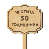 Дървена табелка на клечка с надпис - Честита 50 годишнина