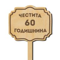 Дървена табелка на клечка с надпис - Честита 60 годишнина