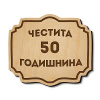 Дървена табелка с надпис - Честита 50 годишнина