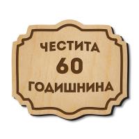 Дървена табелка с надпис - Честита 60 годишнина