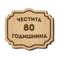 Дървена табелка с надпис - Честита 80 годишнина