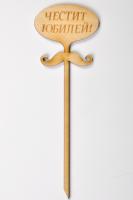 Дървена табелка на клечка с надпис - Честит юбилей-мустаци