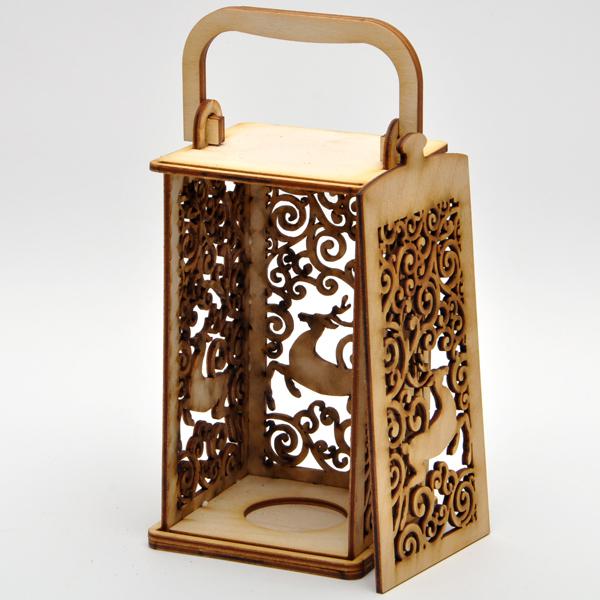 Дървен фенер за декоративна употреба. Да се използва с изкуствена свещичка.